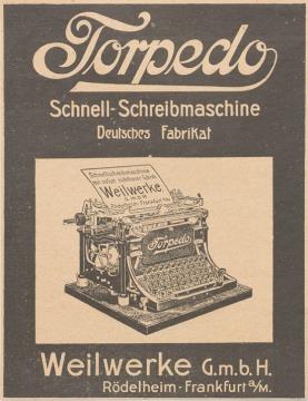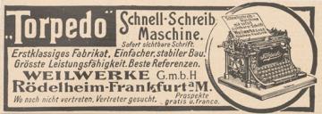 Werbeanzeige für Schreibmaschine Torpedo monochrom