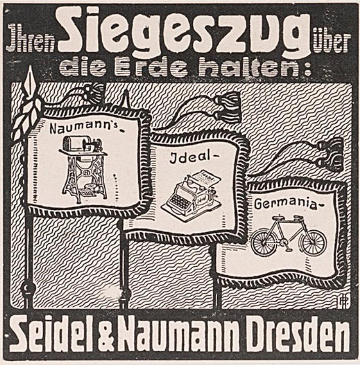 Werbeanzeige des Schreibmaschinenherstellers Seidel & Naumann monochrom Grafik: Paul Hofer, Dresden