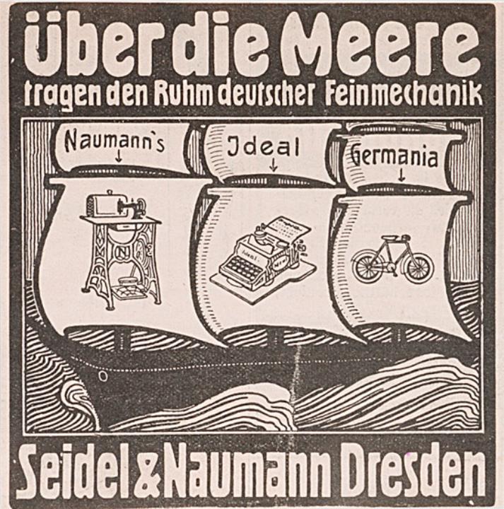 Werbeanzeige des Schreibmaschinenherstellers Seidel & Naumann monochrom Grafik: Paul Hofer, Dresden