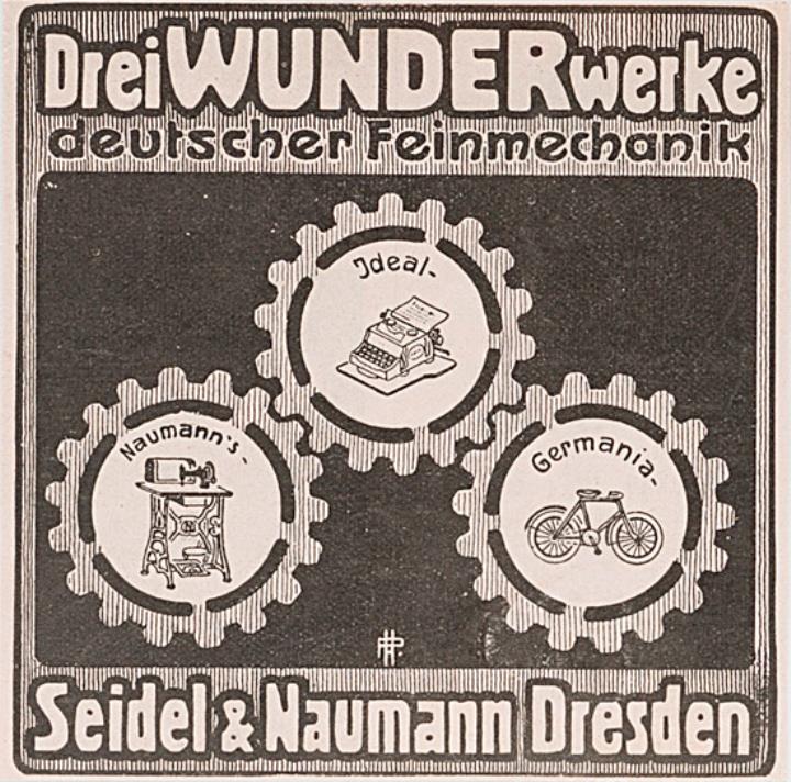 Werbeanzeige des Schreibmaschinenherstellers Seidel & Naumann monochrom Grafik: Paul Hofer, Dresden