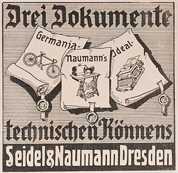 Werbeanzeige des Schreibmaschinenherstellers Seidel & Naumann monochrom, Grafik: HS