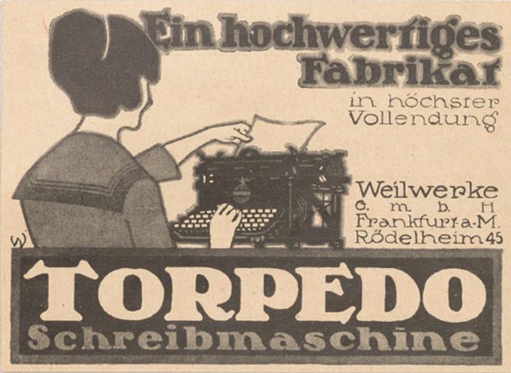 Werbeanzeige für Schreibmaschine Torpedo monochrom