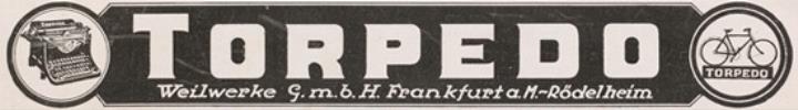 Werbeanzeige für Fahrrad und Schreibmaschine Torpedo monochrom