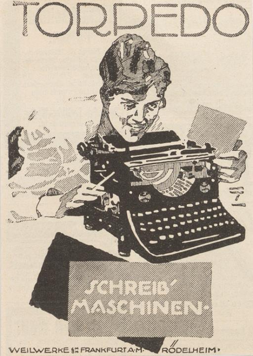 Werbeanzeige für Schreibmaschine Torpedo monochrom