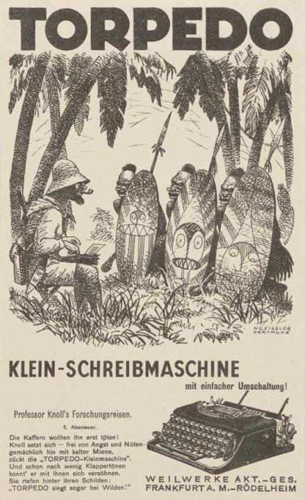 Werbeanzeige für Schreibmaschine Torpedo monochrom