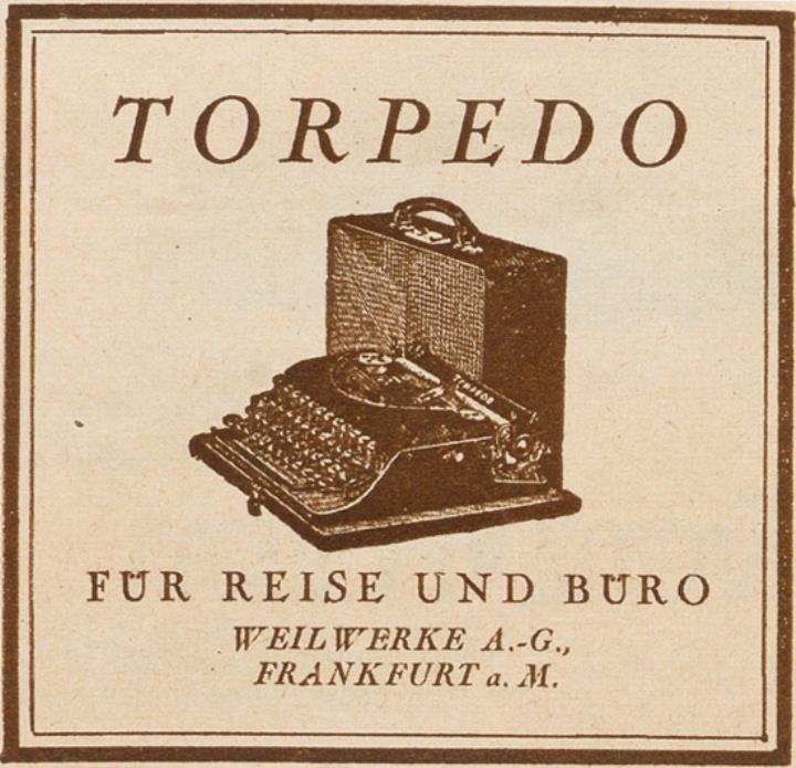 Werbeanzeige für Schreibmaschine Torpedo monochrom