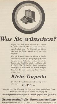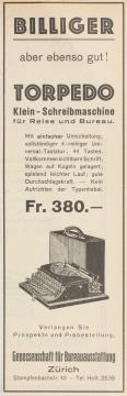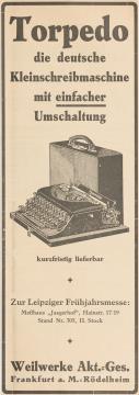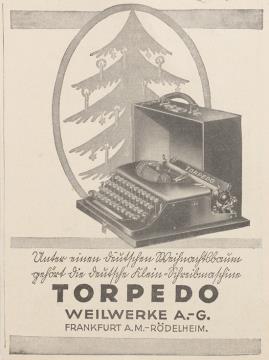 Werbeanzeige für Schreibmaschine Torpedo monochrom