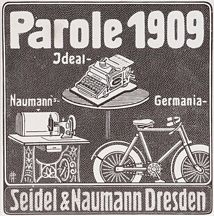 Werbeanzeige des Schreibmaschinenherstellers Seidel & Naumann monochrom