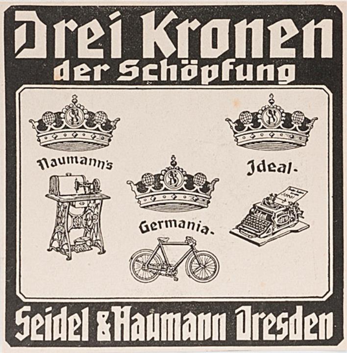 Werbeanzeige des Schreibmaschinenherstellers Seidel & Naumann monochrom