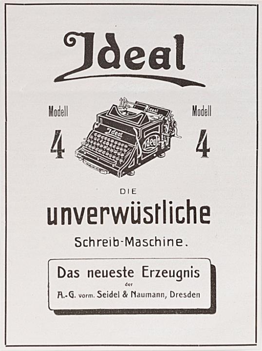Werbeanzeige für Schreibmaschine Ideal 4 monochrom