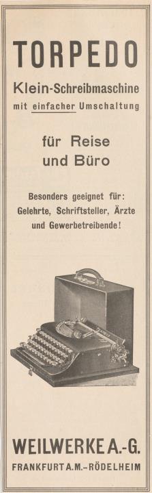 Werbeanzeige für Schreibmaschine Torpedo monochrom