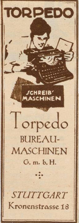 Werbeanzeige für Schreibmaschine Torpedo monochrom