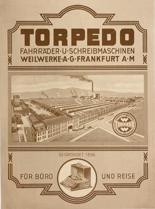 Werbeanzeige für Fahrrad und Schreibmaschine Torpedo monochrom