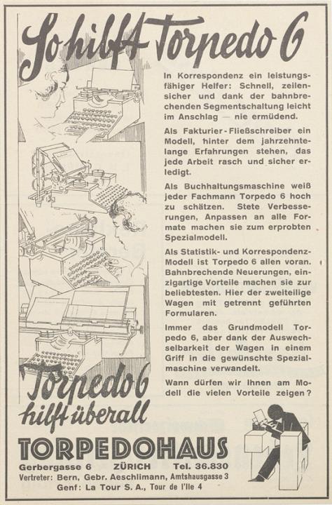 Werbeanzeige für Schreibmaschine Torpedo monochrom