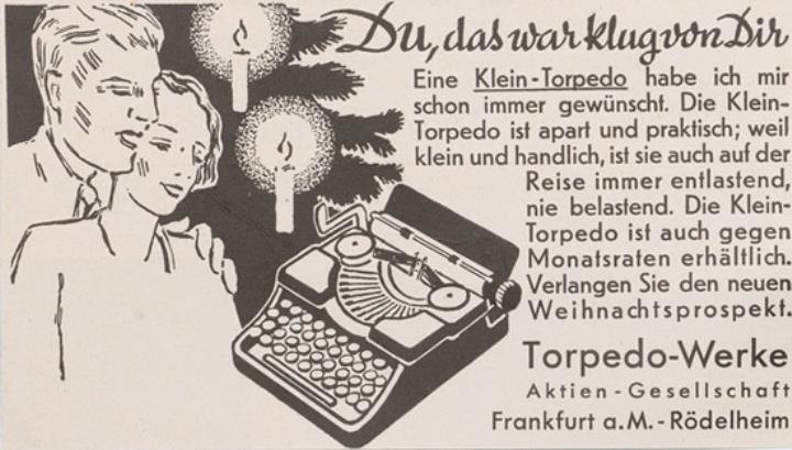 Werbeanzeige für Schreibmaschine Torpedo monochrom, zwei Exemplare