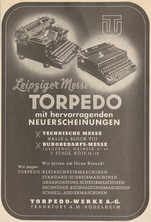 Werbeanzeige für Büromaschinen Torpedo monochrom