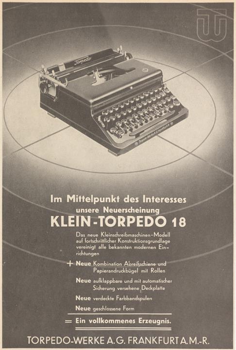 Werbeanzeige für Schreibmaschine Torpedo monochrom