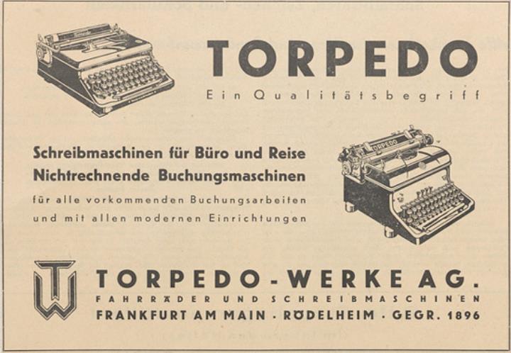 Werbeanzeige für Schreibmaschine Torpedo monochrom, zwei Exemplare