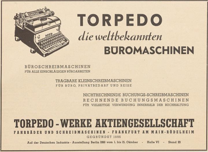 Werbeanzeige für Büromaschine Torpedo monochrom