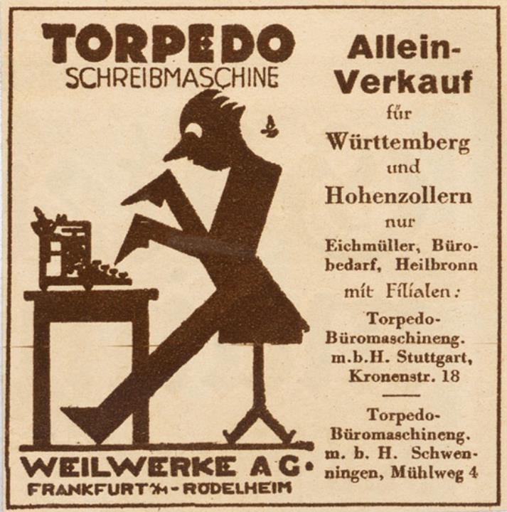 Werbeanzeige für Schreibmaschine Torpedo monochrom