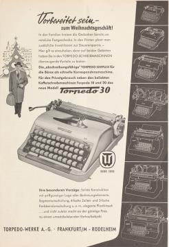Werbeanzeige für Schreibmaschine Torpedo monochrom