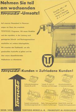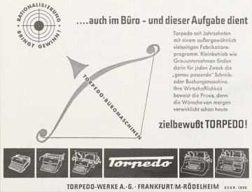 Werbeanzeige für Büromaschine Torpedo monochrom