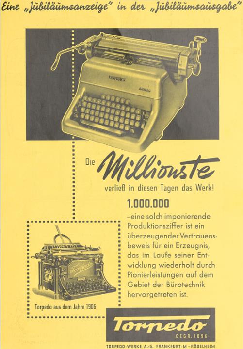 Werbeanzeige für Schreibmaschine Torpedo monochrom