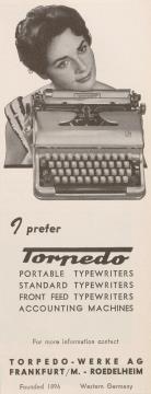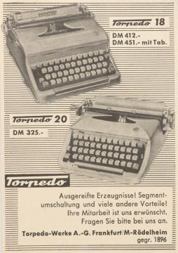 Werbeanzeige für Schreibmaschinen Torpedo monochrom