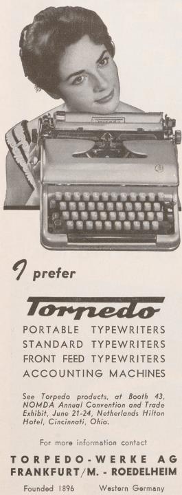 Werbeanzeige für Schreibmaschine Torpedo monochrom