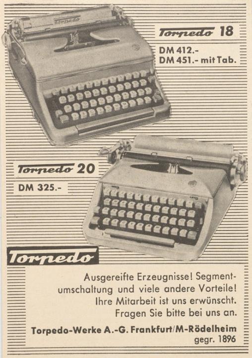 Werbeanzeige für Schreibmaschine Torpedo monochrom