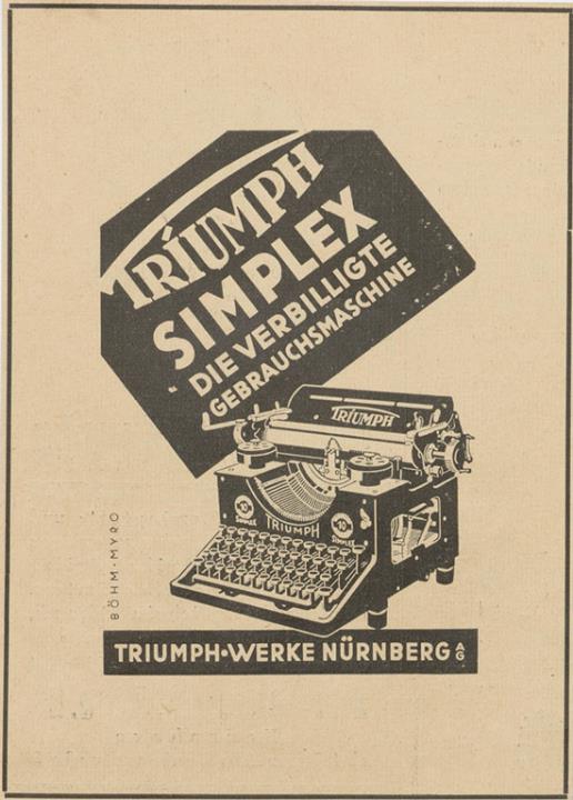 Werbeanzeige für Schreibmaschine Triumph monochrom