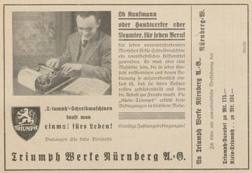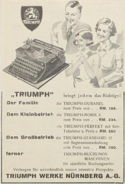 Werbeanzeige für Schreibmaschine Triumph monochrom