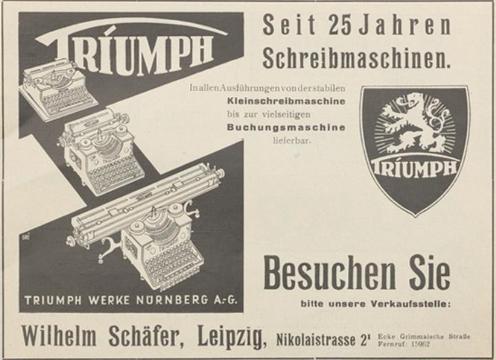 Werbeanzeige für Schreibmaschine Triumph monochrom