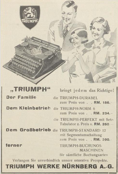 Werbeanzeige für Schreibmaschine Triumph monochrom