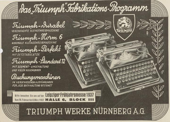 Werbeanzeige für Schreibmaschine Triumph monochrom, zwei Exemplare
