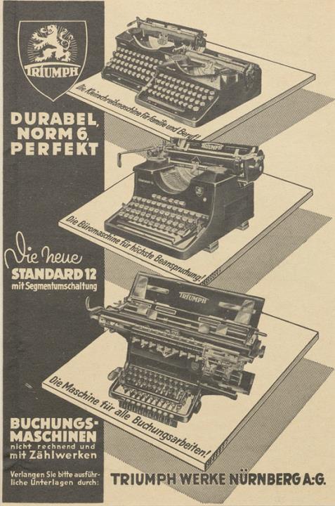 Werbeanzeige für Schreibmaschinen Triumph monochrom