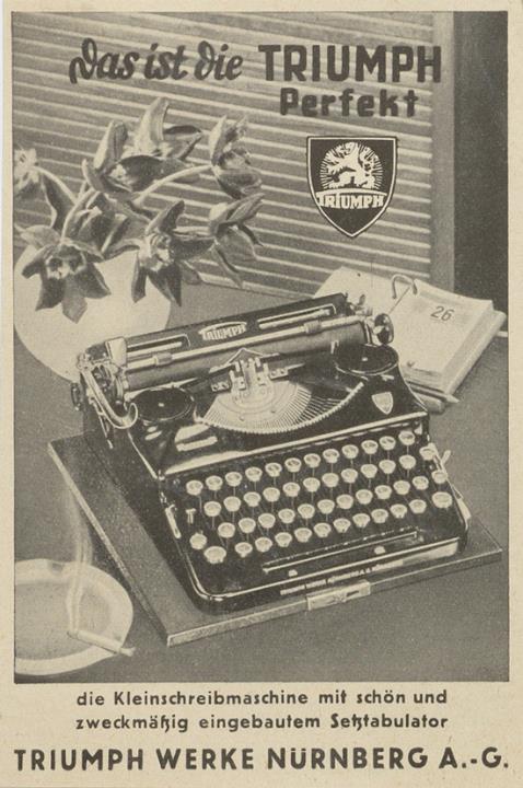 Werbeanzeige für Schreibmaschine Triumph monochrom