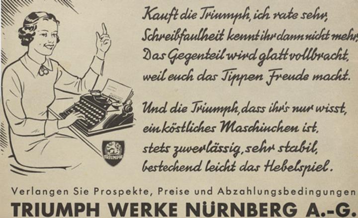 Werbeanzeige für Schreibmaschine Triumph monochrom