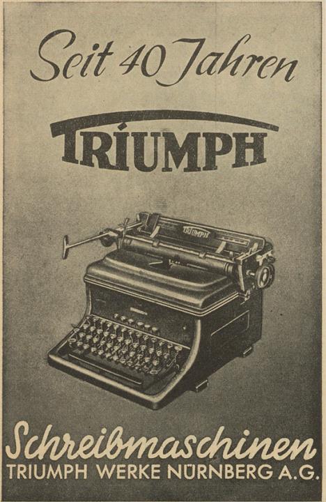 Werbeanzeige für Schreibmaschine Triumph monochrom