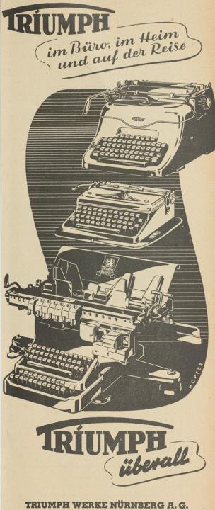 Werbeanzeige für Reiseschreibmaschine Triumph monochrom