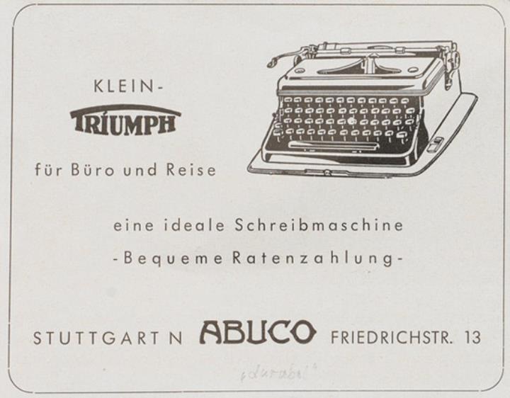 Werbeanzeige für Reiseschreibmaschine Triumph monochrom