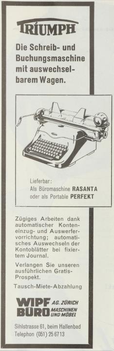 Werbeanzeige für Schreib- und Buchungsmaschine Triumph monochrom