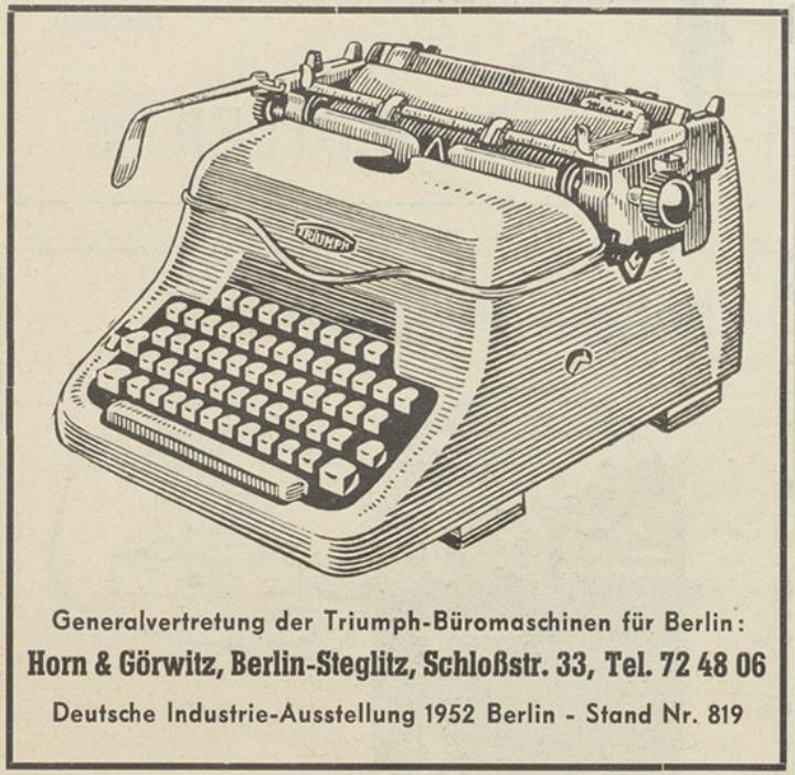 Werbeanzeige für Schreibmaschine Triumph monochrom