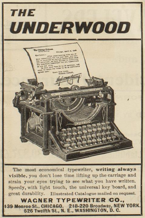 Werbeanzeige für Schreibmaschine Underwood monochrom