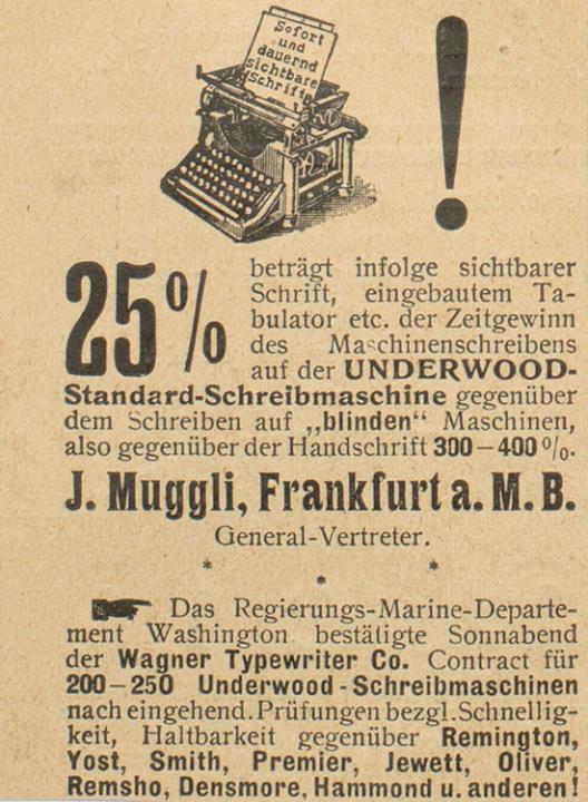 Werbeanzeige für Schreibmaschine Underwood monochrom, zwei Exemplare