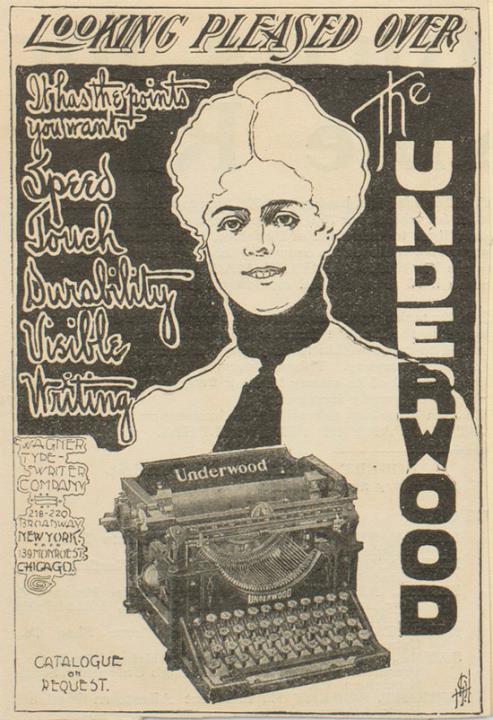 Werbeanzeige für Schreibmaschine Underwood; auf Karton aufgeklebt monochrom