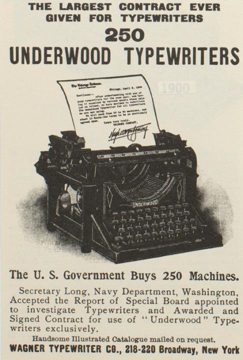 Werbeanzeige für Schreibmaschine Underwood monochrom