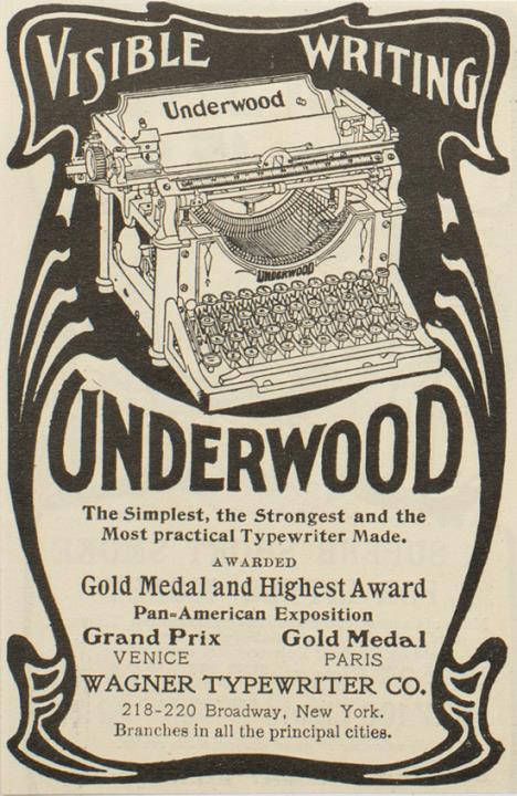 Werbeanzeige für Schreibmaschine Underwood monochrom
