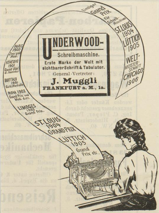 Werbeanzeige für Schreibmaschine Underwood monochrom