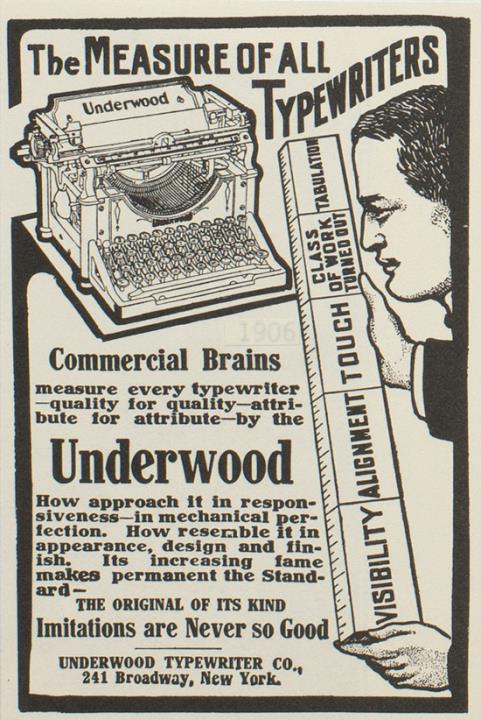 Werbeanzeige für Schreibmaschine Underwood monochrom